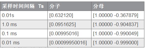 這樣做的目的是為了將內(nèi)部采樣偏移 (inter sample deviation) 控制在可以接受的最小范圍內(nèi)。為說(shuō)明這種情況,表 1 列出了采樣率變化時(shí)對(duì)控制器系數(shù)的影響。在此例中,我們將一個(gè)簡(jiǎn)單的單極點(diǎn)傳輸函數(shù)進(jìn)行了離散處理。(1) 為傳輸函數(shù)的關(guān)系式。