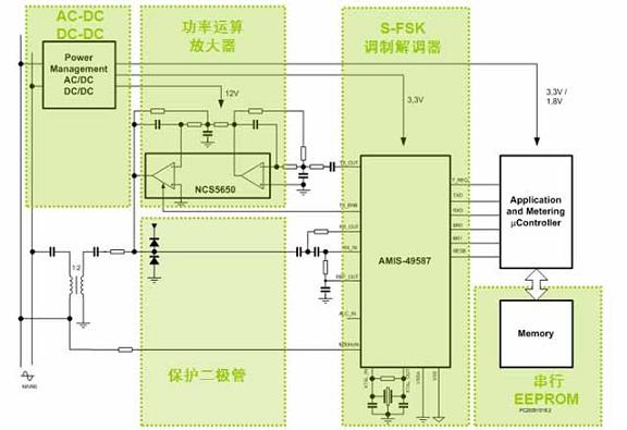 AMIS-49587符合IEC61334-5-1標(biāo)準(zhǔn),為客戶提供眾多應(yīng)用優(yōu)勢(shì)。例如,這器件基于ARM7TDMI處理器內(nèi)核,同時(shí)包含物理接口收發(fā)器 (PHY)和媒體訪問控制器(MAC)層,使其以單芯片方案結(jié)合了模擬調(diào)制解調(diào)器前端和數(shù)字后處理功能,而大多數(shù)競(jìng)爭(zhēng)方案需要復(fù)雜的嵌入式軟件來執(zhí)行與 AMIS-49587相同的功能。設(shè)計(jì)人員使用AMIS-49587調(diào)制解調(diào)器,可以簡(jiǎn)化設(shè)計(jì),能在不到一個(gè)季度的時(shí)間內(nèi)開發(fā)出全套互操作PLC方案,還 降低開發(fā)及應(yīng)用成本。實(shí)際上,基于AMIS-49587的調(diào)制解調(diào)器方案中僅使用2顆IC(另一顆為NCS5650 2 A PLC線路驅(qū)動(dòng)器),外加16顆電阻、17顆電容、2個(gè)二極管、1個(gè)晶體和1個(gè)脈沖變壓器,總元件數(shù)量?jī)H為39個(gè),提供低物料單(BOM)成本。