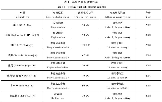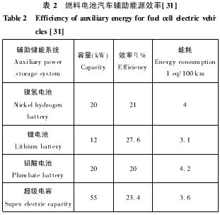 燃料電池不適合作為動(dòng)力系統(tǒng)的單一驅(qū)動(dòng)能源,必須選用輔助能源系統(tǒng)合理補(bǔ)充驅(qū)動(dòng)電動(dòng)汽車所需的能量,覆蓋功率波動(dòng),提高峰值功率,吸收回饋能量,改善燃料電池輸出功率的瞬態(tài)特性。目前各大汽車開發(fā)商采用了輔助動(dòng)力,來提高燃料電池汽車的性能(表1所示)。