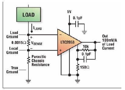 理論上,不應該強迫設計師通過增加檢測電阻來補償放大器。只要放大器能夠以足夠的增益和精度工作,設計師就應該使用最小可接受的檢測電阻。這可以根據電流檢測放大器的輸入偏置電壓和必須處理的最小電流來計算。