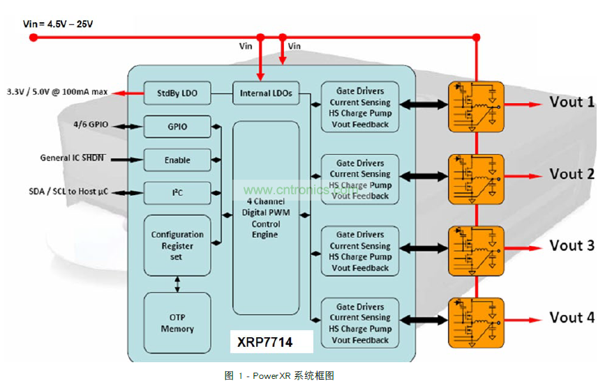 過去可以使用模擬電路或 FPGA 完成相移同步時(shí)鐘。 很遺憾,這會增加額外的組件、成本和開發(fā)工作。令人欣慰的是,當(dāng)今市場上有多個數(shù)字 PWM 控制器集成了同步和相移。在本文中,Exar 的 PowerXR 技術(shù)展現(xiàn)了相移的優(yōu)點(diǎn),如圖 1 所示。