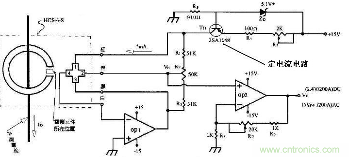 圖2:霍爾電流傳感器的應(yīng)用電路圖