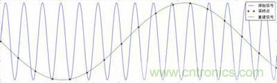 簡單溫習(xí)奈奎斯特采樣定理:如果信號是帶限的,且采樣頻率Fs高于信號最高頻率Fmax的兩倍,采樣樣本中完整地保留了原始信號中的信息。而高于或等于采樣頻率的一半頻率分量,則會導(dǎo)致混疊現(xiàn)象,如圖 5所示由于采樣頻率過小,每個信號周期樣本數(shù)量太少,重建后的波形頻率分量落到低于采樣頻率的頻率范圍中,與原始信號大相徑庭。