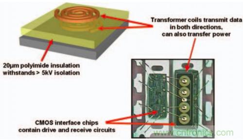 圖3. 基于變壓器的數(shù)字隔離器的結(jié)構(gòu)