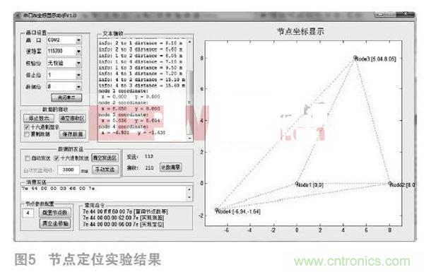 本文設計了節(jié)點的通信方式及消息,在統(tǒng)一的消息格式內,根據(jù)所要執(zhí)行的任務的不同,具體設計各種應用消息;其次,根據(jù)系統(tǒng)需求和節(jié)點類型的不同,設計并說明了不同節(jié)點的程序流程;同時設計了良好的人機交互定位界面;最后,對網絡節(jié)點的測距性能和定位性能進行實驗分析,驗證了系統(tǒng)基本滿足對測距范圍和測距精度要求和節(jié)點定位的技術要求。