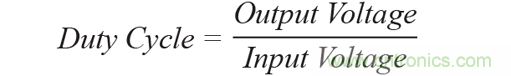 開關(guān)導(dǎo)通時)和斷開時間(當主開關(guān)斷開時)之間的關(guān)系。降壓轉(zhuǎn)換器的占空比由以下公式定義: