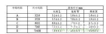 ② 表示鉭電容的尺寸大小,有A、B、C、D、E、Y、V 六種尺寸