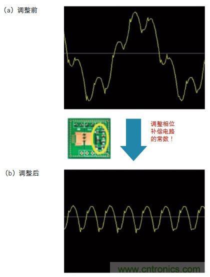 圖2:異常振蕩時和正常工作時的輸出電壓波形 (a)為出現(xiàn)異常振蕩時的輸出電壓波形。(b)為正常工作時的輸出電壓波形。通過調整反饋環(huán)路相位補償電路的常數(shù),能夠防止異常振蕩。