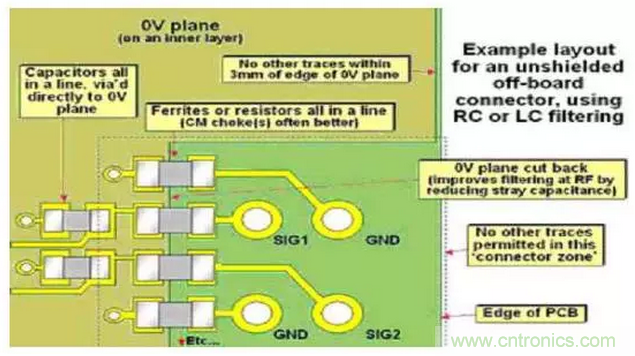 5、接口信號的濾波、防護、隔離器件等盡可能靠近接口連接器處,相應的信號連接線必須盡可能短(符合工藝要求條件下的最短距離)。