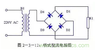 由于全波整流電路需要特制的變壓器,制作起來比較麻煩,于是出現(xiàn)了一種橋式整流電路。這種整流電路使用普通的變壓器,但是比全波整流多用了兩個(gè)整流二極管。由于四個(gè)整流二極管連接成電橋形式,所以稱這種整流電路為橋式整流電路。