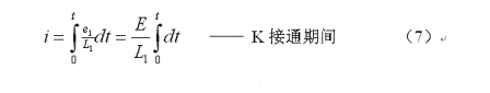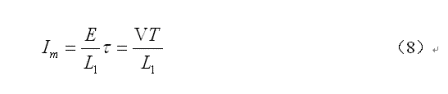 上面(8)式是用來計算開關電源變壓器初級線圈或儲能電感線圈電流的公式,式中 為流開關電源變壓器初級線圈或儲能電感線圈電流的最大值,即:開關接通后,持續(xù)時間等于 時,流過變壓器初級線圈或儲能電感線圈電流的瞬時值;E為開關電源的工作電壓,V為加于變壓器初級線圈兩端的開關電壓(直流脈沖電壓),L1為變壓器初級線圈電感量。