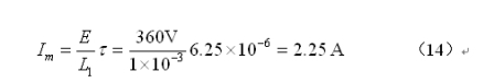 根據(jù)圖8和圖9,正常工作時(shí),流過高壓包初級線圈的最大電流Im不應(yīng)該超過極限電流值Imax的70%,由此,可以求得流過高壓包初級線圈的極限電流Imax為1.49 A 。