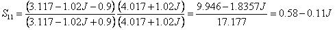 舉個(gè)例子,用100歐姆阻抗表征的復(fù)合回波損耗S11 = 0.53 - 0.12J 轉(zhuǎn)換到90歐姆的如下:
