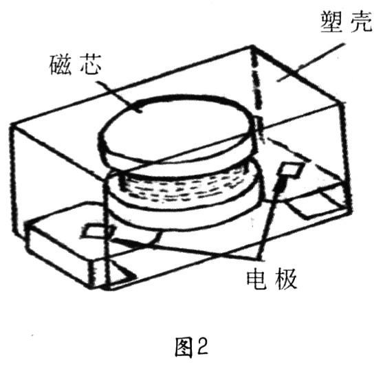 另一種形式的片式電感器是片式繞線電感器,這是對(duì)傳統(tǒng)繞線型電感器的一種改進(jìn),采用微小型工字型磁芯,經(jīng)繞線、焊接、電極成型、塑封等工序制成,見(jiàn)圖2。這種類(lèi)型的片式電感生產(chǎn)工藝簡(jiǎn)單,電性能優(yōu)良(電感量大,品質(zhì)因素高),適合于大電流通過(guò),可靠性好。但受磁芯尺寸和制造工藝限制,進(jìn)一步微小型有困難。