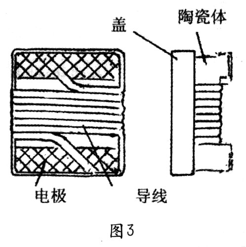 [page]還有一種片式繞線電感是采用H型陶瓷芯,經(jīng)過(guò)繞線、焊接、涂復(fù)、環(huán)氧樹(shù)脂灌封等工藝制成,見(jiàn)圖3,由于電極已預(yù)制在陶瓷芯體上,制造工藝更加簡(jiǎn)單,而且可以進(jìn)一步小型化。這類(lèi)電感的電感量較小,但自諧振頻率高(通常為5~6GHz,最高達(dá)12.5GHz),更適合高頻使用。