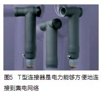 多數(shù)電力傳輸連接器采用直線型連接或T型連接(如圖5)。由于集電網(wǎng)絡(luò)位于地下,可靠性尤為重要。與機(jī)艙的機(jī)械部件需要耐磨與精密電子等需求不同,集電網(wǎng)絡(luò)不像渦輪機(jī)那樣需要連接提供高速及簡便維護(hù)性。安裝完畢后,集電網(wǎng)絡(luò)將工作多年。而集電網(wǎng)絡(luò)的故障將導(dǎo)致許多發(fā)電機(jī)停機(jī)。同樣,集電網(wǎng)絡(luò)到變電站的連接故障將導(dǎo)致整個(gè)風(fēng)力發(fā)電站癱瘓。