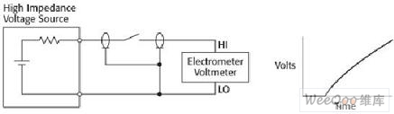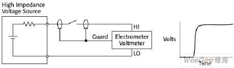 高阻抗電壓開關需要用在監(jiān)測電化學電池、測量半導體電阻率之類的應用中。開關和測量具有高內部阻抗的電壓源會遇到諸如偏移電流、雜散漏流和靜電干擾之類的誤差。采用并聯電容技術可以延長穩(wěn)定時間。