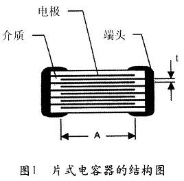 圖1表明,片式疊層陶瓷電容器是一個多層疊合的結(jié)構(gòu),其實質(zhì)是由多個簡單平行板電容器的并聯(lián)體。因此,該電容器的電容量計算公式為