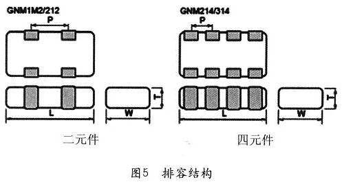 村田制作所還生產(chǎn)一種排容,在一個器件中有2至4個電容,尤其適合在單片機的總線上使用,見圖5。