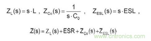 等效電感阻抗包含ZESR、ZESL、ZCo,計(jì)算方式如下所示:
