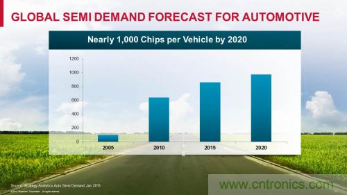 幾乎每一種重要的車載系統(tǒng)都由半導(dǎo)體芯片、軟件和傳感器組成的復(fù)雜網(wǎng)絡(luò)進(jìn)行管理或控制,而所有這一切都協(xié)調(diào)一致地工作,才能讓我們的車輛順暢、高效、舒適地行駛。此外,半導(dǎo)體芯片也是日漸普及的信息娛樂(lè)系統(tǒng)的核心,后者也正走出豪華汽車,逐漸邁入眾多入門級(jí)車型的行列中。