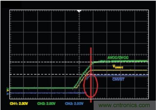 圖1. 在電源上升時拉高CNVST可能導(dǎo)致未知狀態(tài)
