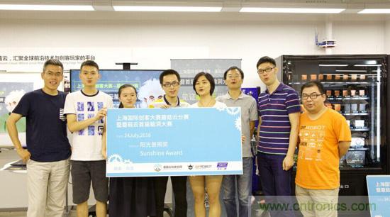 云漢芯城社區(qū)運(yùn)營總監(jiān)顧天任(右二)為參賽隊(duì)伍頒發(fā)陽光普照獎