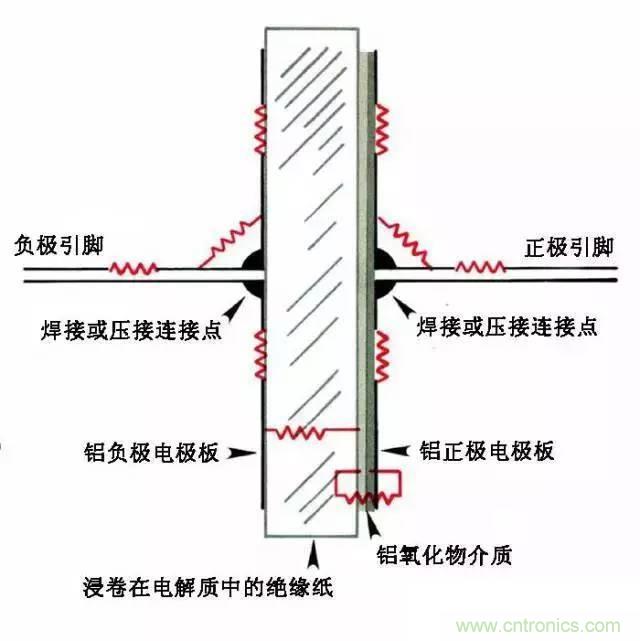 鋁電解電容還包括存在于濕的電解質(zhì)溶液的電阻、以及含有高電平“水”的鋁氧化物(水合氧化鋁)中的電阻等。