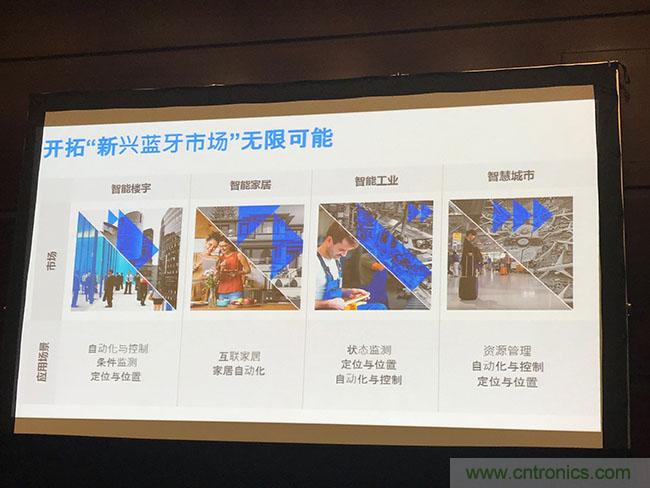 藍(lán)牙技術(shù)聯(lián)盟(Bluetooth SIG)目前已經(jīng)擁有34000會(huì)員,其中6000家中國(guó)會(huì)員企業(yè),SIG總監(jiān)Chuck Sabin回顧了藍(lán)牙20年來的發(fā)展歷程和取得的成績(jī),以及藍(lán)牙市場(chǎng)的發(fā)展趨勢(shì)特別是新興市場(chǎng)的發(fā)展前景。智能樓宇,智能家居,智慧城市和汽車是熱門應(yīng)用領(lǐng)域,Sabin指出。