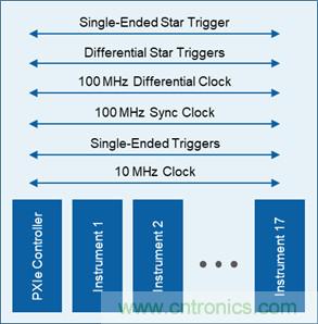 ● PXI Express保留了原始的PXI規(guī)范中的10 MHz背板時(shí)鐘,以及單端PXI觸發(fā)總線和長(zhǎng)度匹配的PXI星形觸發(fā)信號(hào)。
