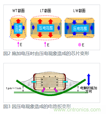 陶瓷介質(zhì)是MLCC主要組成部分,電壓作用下,電致伸縮不可避免。如電致伸縮強烈表現(xiàn)為壓電效應(yīng),則會產(chǎn)生振動。