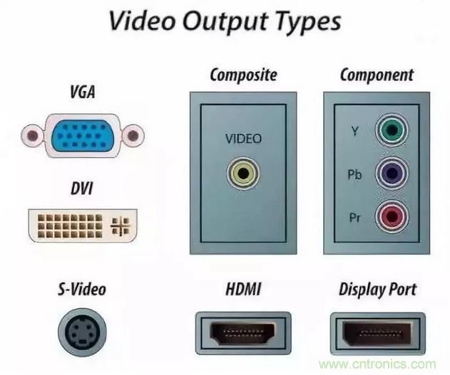 如上圖所示,電視機(jī)背面有幾個(gè)視頻連接器端子。今天我們來(lái)了解一下顯示連接器的種類及其特點(diǎn)。