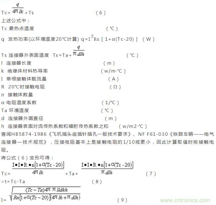 (b) 電連接器熱設(shè)計應(yīng)驗算:接觸體的工作電流是否大于導(dǎo)線的安全工作電流;電連接器允許的最高溫度條件下,其工作電流是否大于規(guī)定的額定電流;以額定電流核算其溫升值是否符合規(guī)定。