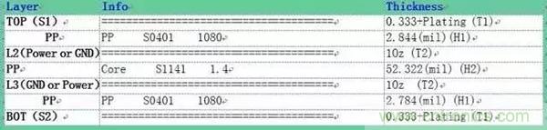 下圖為四層板的參考疊層,其中中間兩層為參考層,參考層通常為GND或Power,并且差分線所對應的參考層必須完整,不能被分割,否則會導致差分線阻抗不連續(xù)。若是以圖 2疊層設計四層板,通常設計時差分線采用4.5mil的線寬及5.5mil的線間距既可以滿足差分阻抗90Ω。