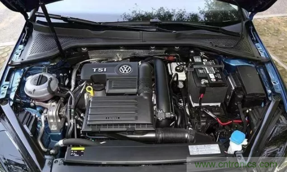 打開高爾夫的機艙蓋,發(fā)現(xiàn)機艙里面的管路,線束顯得有點零亂。