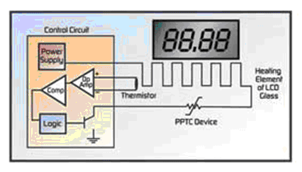 - 安裝獨立于加熱元件控制器的PPTC器件,保護LCD和加熱器的控制電路
