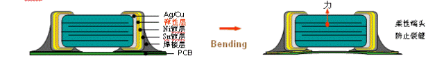 - 為電容端電極增加“彈性層”有效吸收外應(yīng)力,降低裂縫的發(fā)生機(jī)率