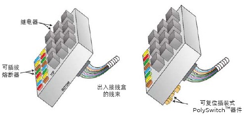 使用PolySwitch過流保護(hù)器件可以實(shí)現(xiàn)分散式電氣系統(tǒng)架構(gòu)。鑒于汽車級器件的可用性和在繼電器上可以期待的可靠性,這些模塊可以開關(guān)(切換)并保護(hù)自身的輸出負(fù)載并安裝在不便維修的位置。