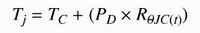 這里Tj為結(jié)溫,TC為外殼溫度,PD為FET功率消耗RθJC(t)為瞬態(tài)熱阻,結(jié)面到外殼間有500μs的脈沖。