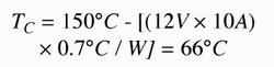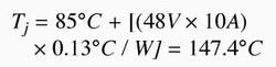 計算出的結(jié)溫非常接近功率FET(NTB52N10T4)的額定溫度上限Tj(150℃),如果外殼溫度發(fā)生一個很小的變化,很容易便超過了它。