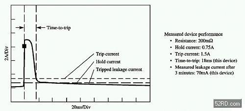 圖3.PolySwitchnanoSMDM075元件處于故障條件下的回應(yīng)