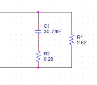 下圖給出了完成了參數(shù)定義的55W白熾燈泡的PSPICE等效模型。