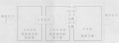 每個(gè)器件(包括其周圍電容)的接地端分別用很粗的導(dǎo)線連接到AD或者是DA 的模擬地上,所有的地都在AD或者DA的下面與數(shù)字地一點(diǎn)連接。