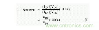 計算和測量電源效率非常簡單。EFFSOURCE = (送入調節(jié)器的功率)/(VPS輸出功率) x 100%: