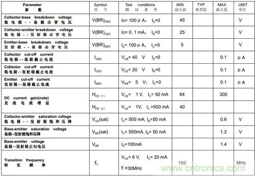 對(duì)于9013、9012而言,飽和時(shí)Vce小于0.6V,Vbe小于1.2V。下面是9013的特性表: