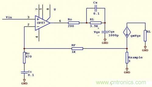 但Ro是運(yùn)放內(nèi)部電阻,無法操作,因此在Ro后添加一只電阻Rs,并將Cs與Rs并聯(lián)。