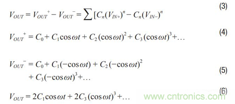 當(dāng)使用一個(gè)差分放大器時(shí),輸入和輸出如圖3所示,表示為公式 3、公式4、公式5和公式6。