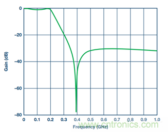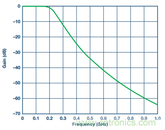 由于接收機(jī)IF濾波器用于抑制雜散和混疊信號(hào),因此阻帶滾降越快越好。但更快的滾降意味著要使用更高階器件。一般不推薦采用很高階的濾波器,原因如下: