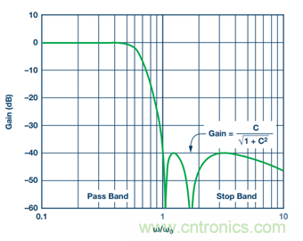 為了確定通帶中的最大紋波量,應(yīng)使該規(guī)格等于系統(tǒng)要求的最大限值。這樣有助于獲得更快的阻帶滾降。