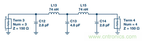 使用濾波器軟件,如MathCad,® MATLAB,® 或ADS來設(shè)計(jì)單端低通濾波器。